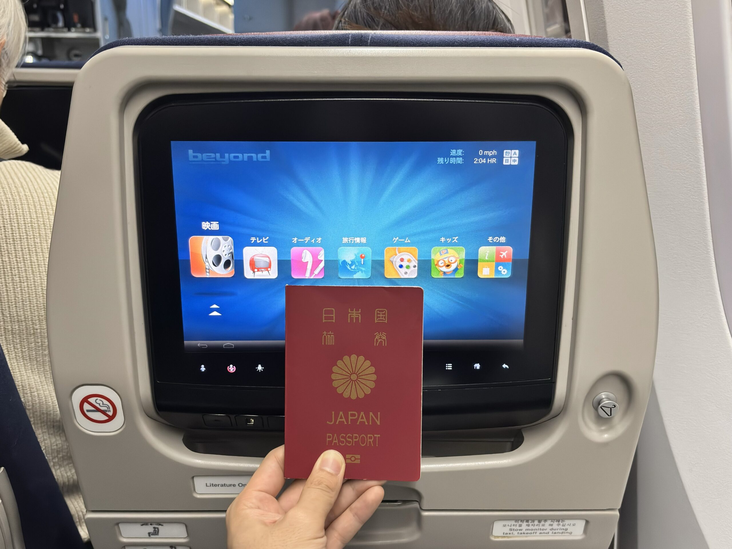 明るく綺麗な機内。就航から10年近くになるHL-8083ですが、全く問題ありません