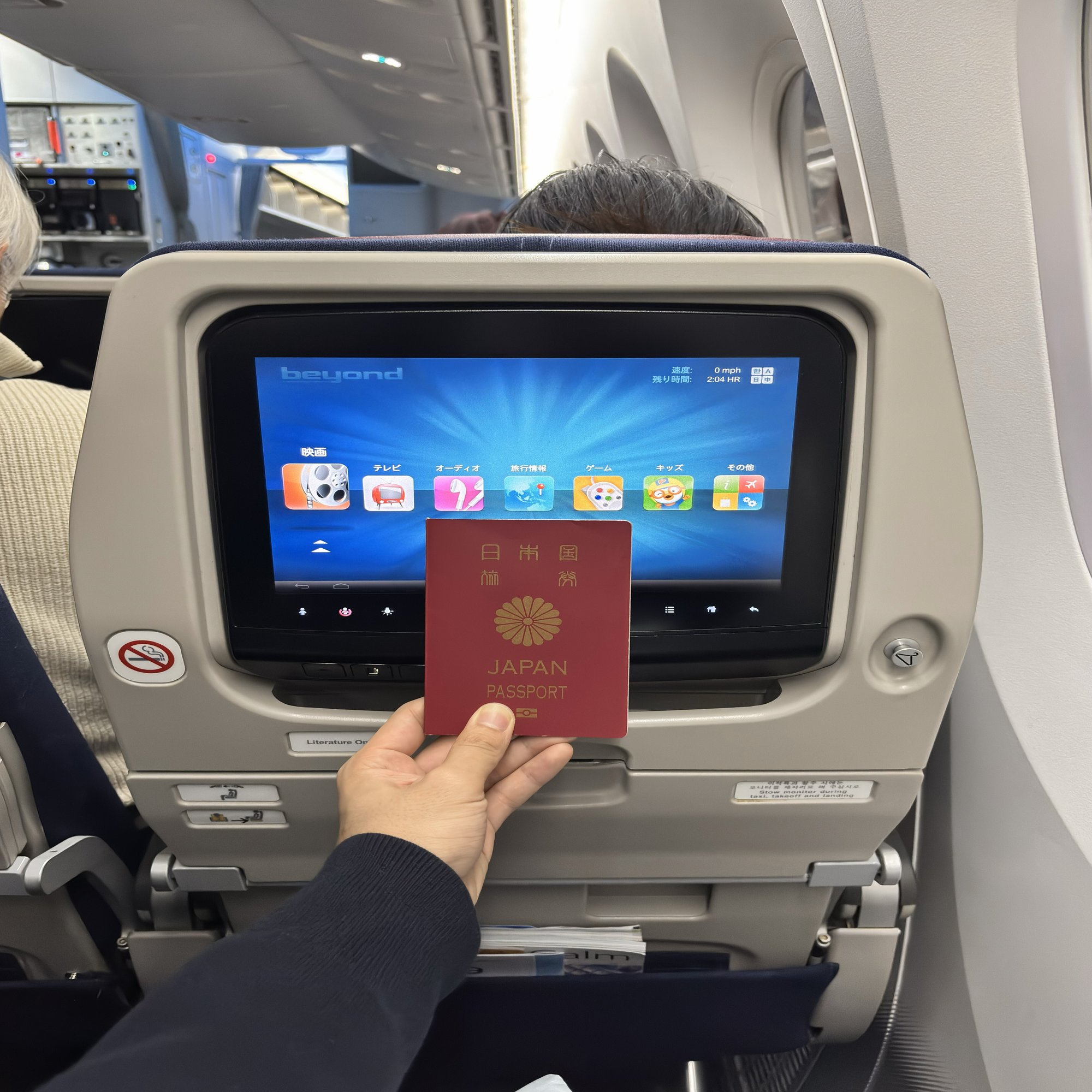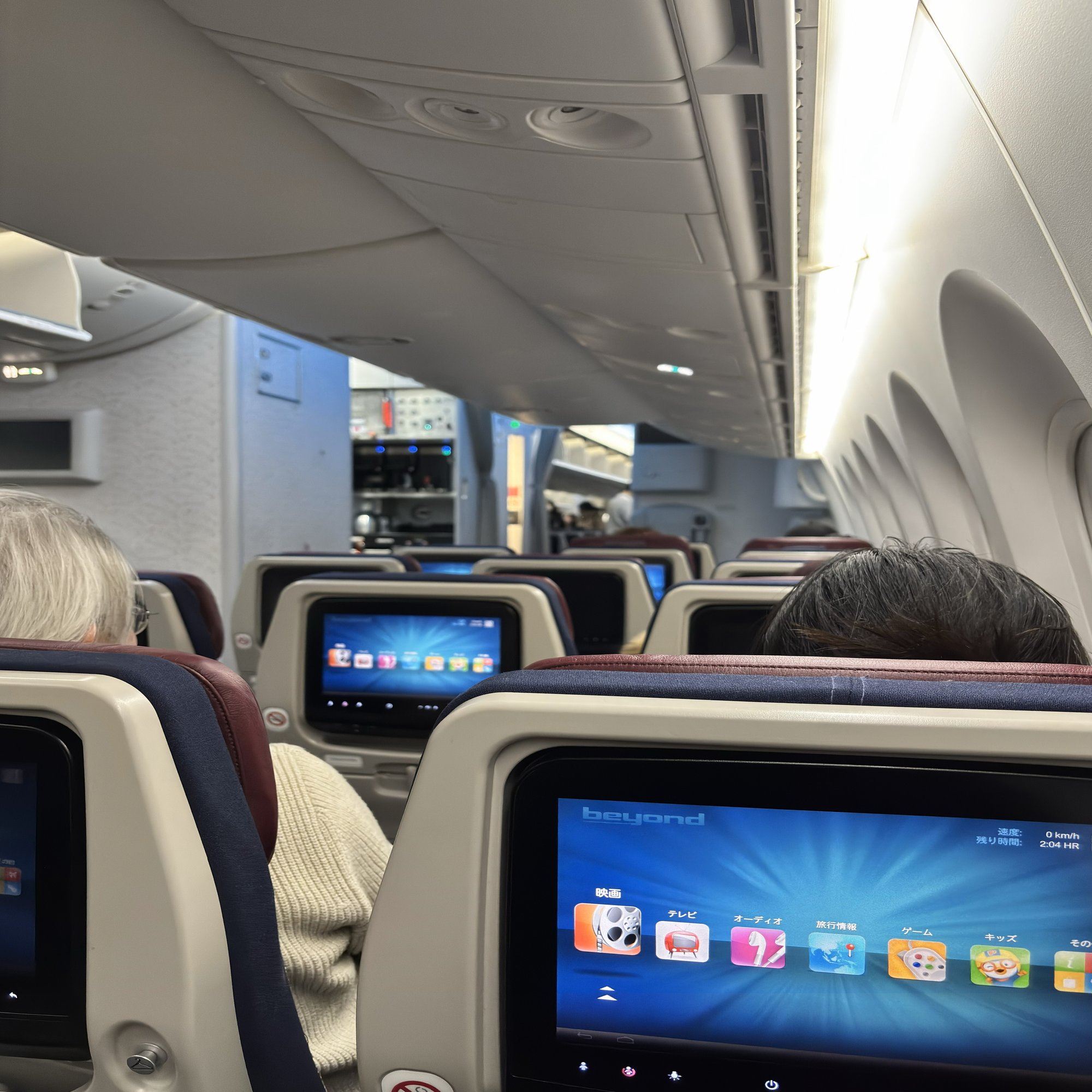 明るく綺麗な機内。就航から10年近くになるHL-8083ですが、全く問題ありません
