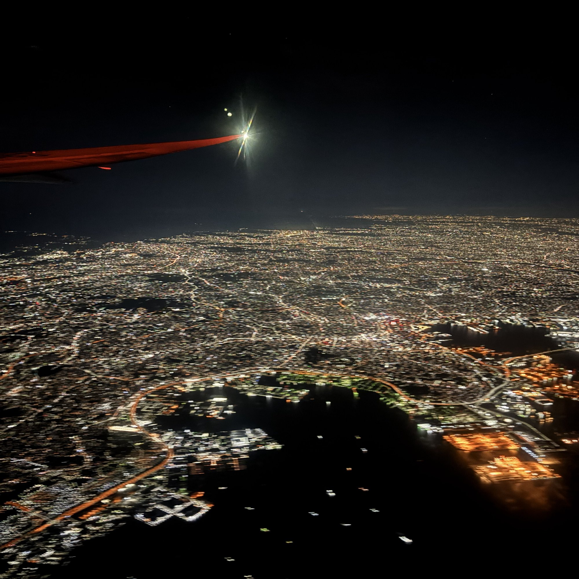 窓の外には、地元横浜の夜景が。わかりやすい形してるね(笑)