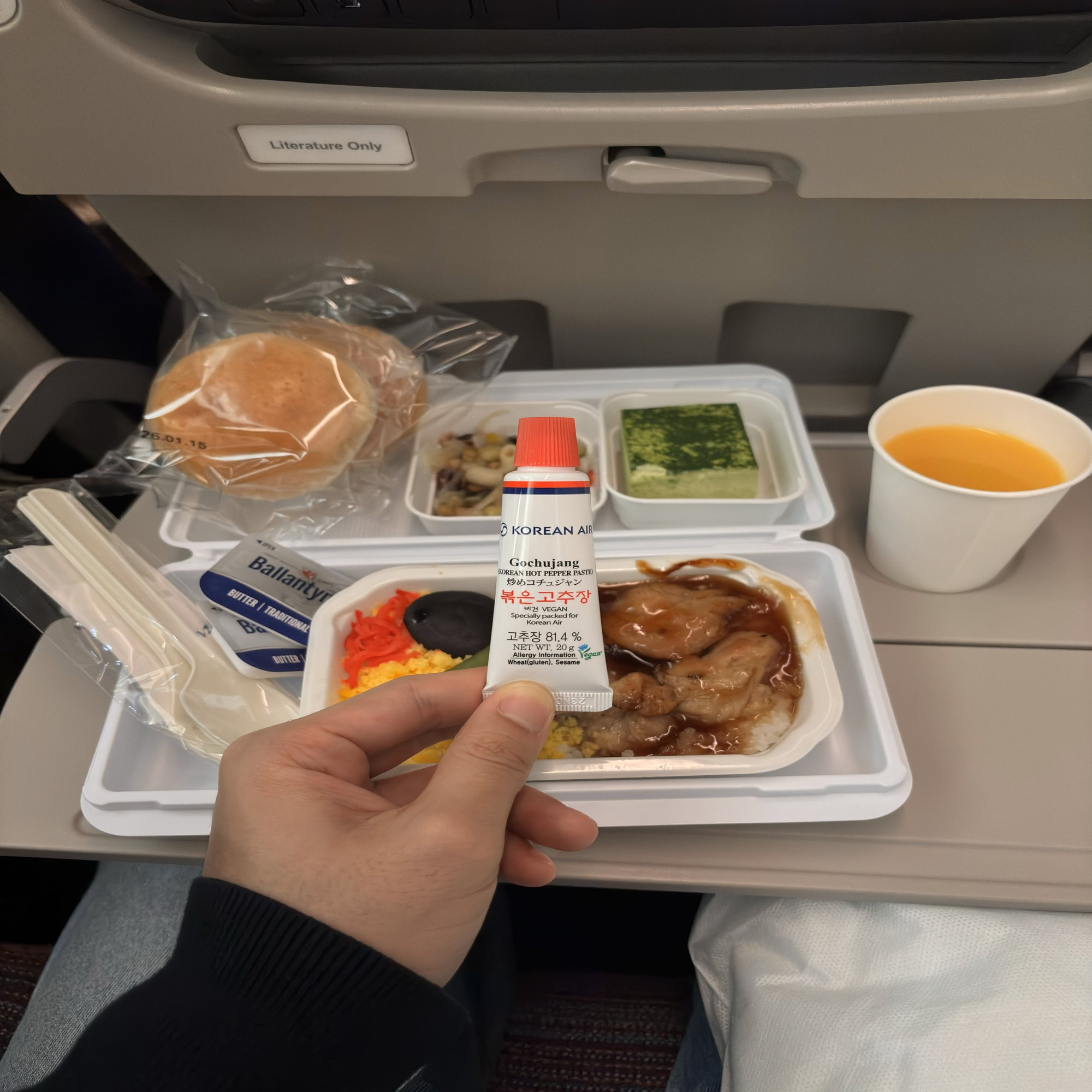 名物のコチュジャン。韓国の航空会社って感じがして好き